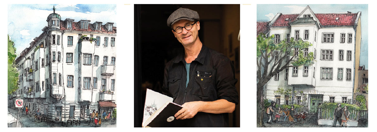 Christian Badel: Portraits of houses from Florastraße and Pankow – drawings